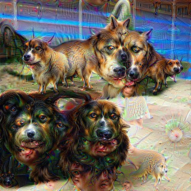Após diversas iterações, a imagem resultante é, frequentemente, completamente irreconhecível (e bizarra). O google criou até mesmo uma "galeria do inceptionism" com alguns dos resultados mais chocantes de suas experimentações com o código e as redes neurais.
